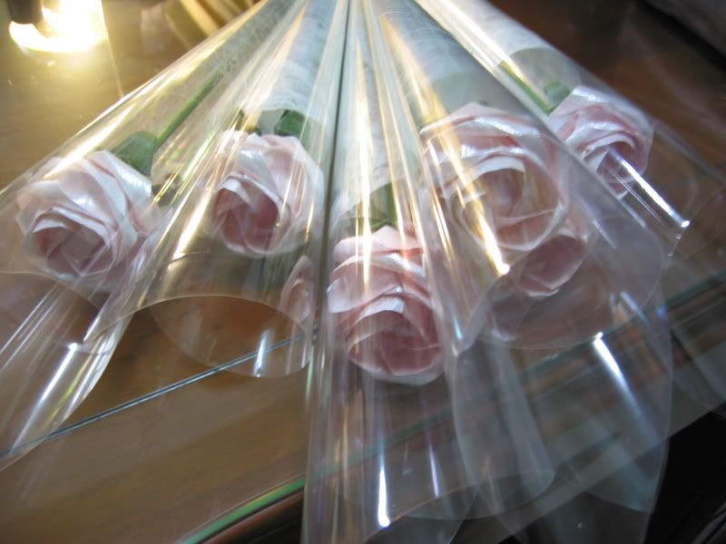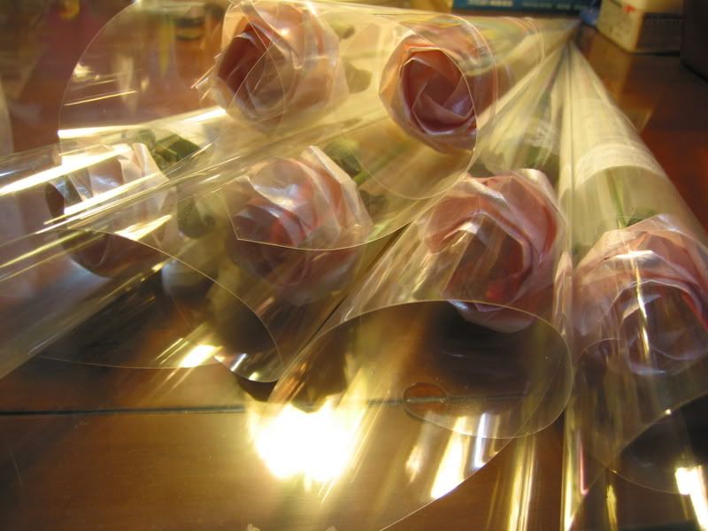 一張方形玻璃紙 可包兩朵花