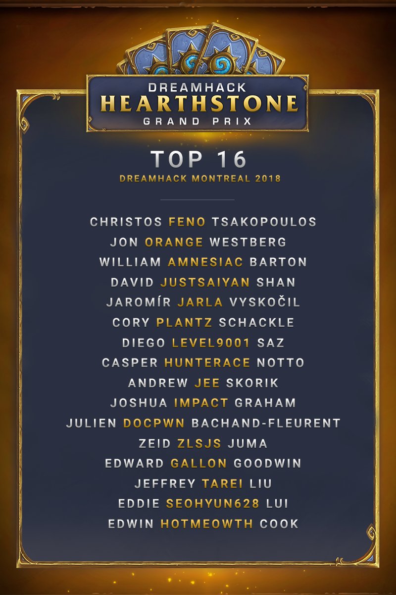 預計開打時間:台灣時間23:15 實 況 :https://www.twitch.tv/dreamhackhs 轉播:Cora/L0rinda/Firebat/DrJ 賽事資訊:https://grandprix.dreamhack.com/ 官網 https://goo.gl/bBeHkv 行程表 https://goo.gl/pY2Dpi 選手名單 https://goo.gl/9qxmE6 賽程表 總獎金15000鎂 75分HCT積分 冠軍5000鎂 15分HCT積分 賽 制 :今年DreamHack的第三項爐石賽事,來到北美的加拿大,連續兩年舉辦賽事 去年此時muzzy在這奪冠拉開與Zalae的差距,拿下NA最後一杯資格,今年的賽事則是爆爆 計畫版本上市後第一個LHS賽制的大賽 模式:標準模式 參賽選手:160名 設備:自行準備 版本:Boomsday 12.0 賽制:第一階段9輪取前16名晉級,接著單淘汰賽制到冠軍產生 賽制:所有賽事皆採用LHS賽制,4 BAN 1 BO5,把對手所有套牌都擊倒時獲勝 今天預計進行5至9輪瑞士制跟16強賽,轉播會挑選特定賽事,提早打完的話會播備用場 這輪比較想看橘子打人中之龍R Round 5:DocPwn 3:2 TS.Amnesiac 職業: (5-0/4-1) Game 1:哮斗薩 < 奇數賊 Game 2:TokenD < 奇數賊 Game 3:偶數術 > 奇數賊 Game 4:偶數術 > 死聲獵 Game 5:偶數術 > 偶數術 Round 6: Game 1: Game 2: Game 3: Round 7: Round 8: Round 9: 16強名單: Ro16 Match 1: Ro16 Match 2: -- ※ 發信站: 批踢踢實業坊(ptt.cc), 來自: 180.177.97.249 ※ 文章網址: https://www.ptt.cc/bbs/Hearthstone/M.1536419193.A.FDD.html