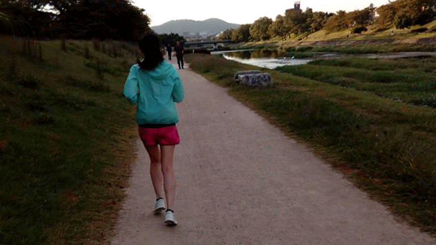 市區的鴨川跑跑步,由於鴨川兩岸的步道夜晚沒有燈光照明,夜跑怕路線不熟悉比較危