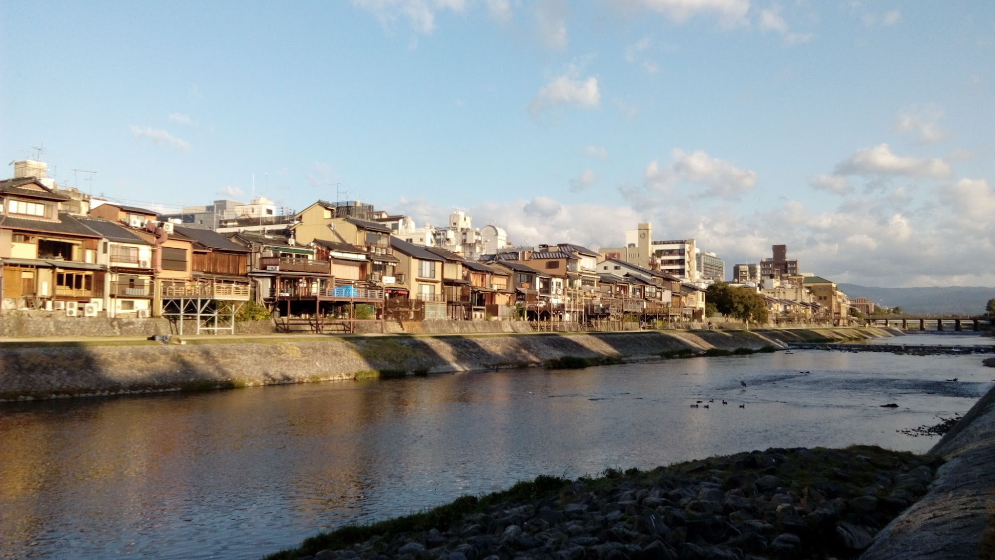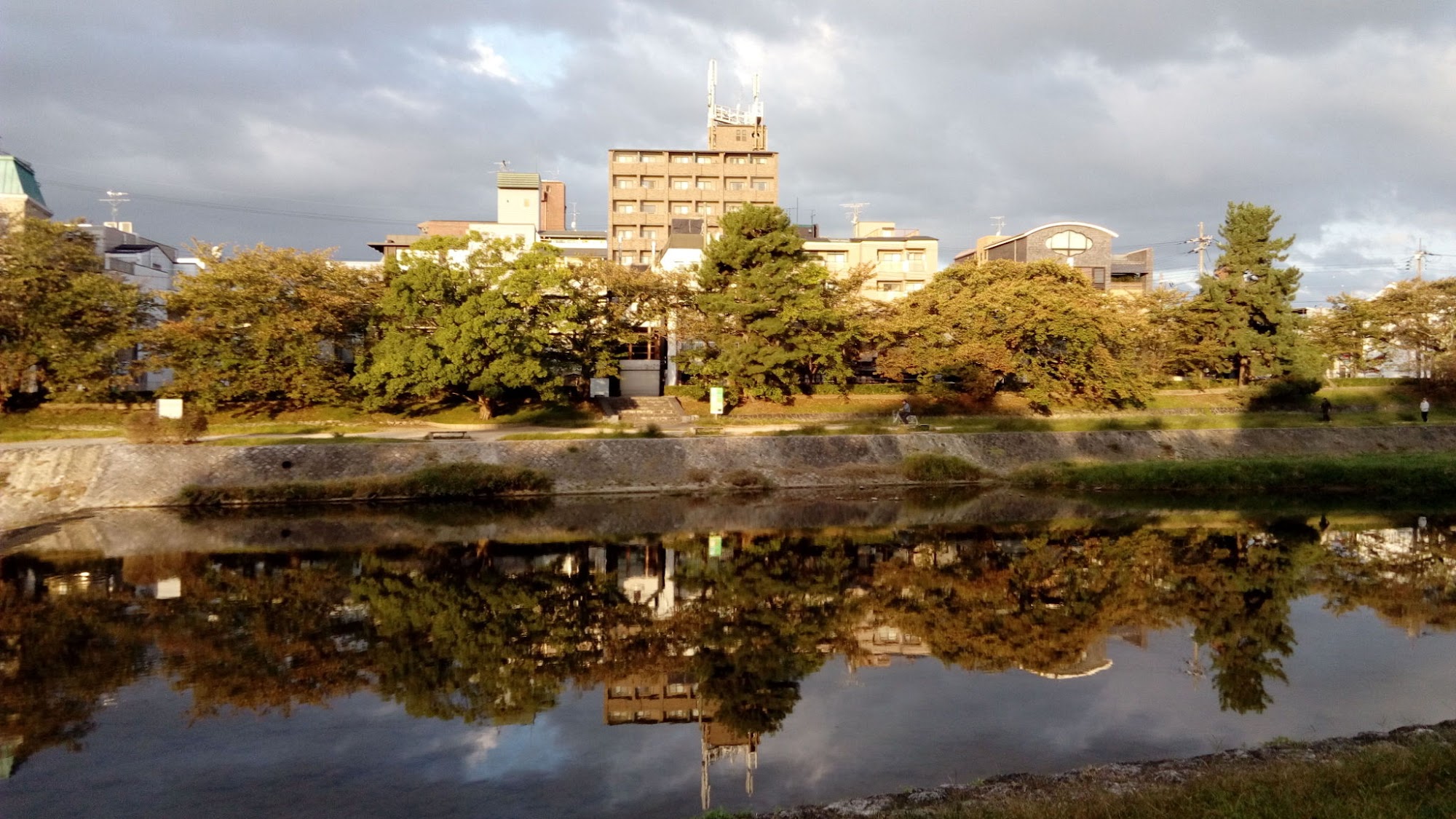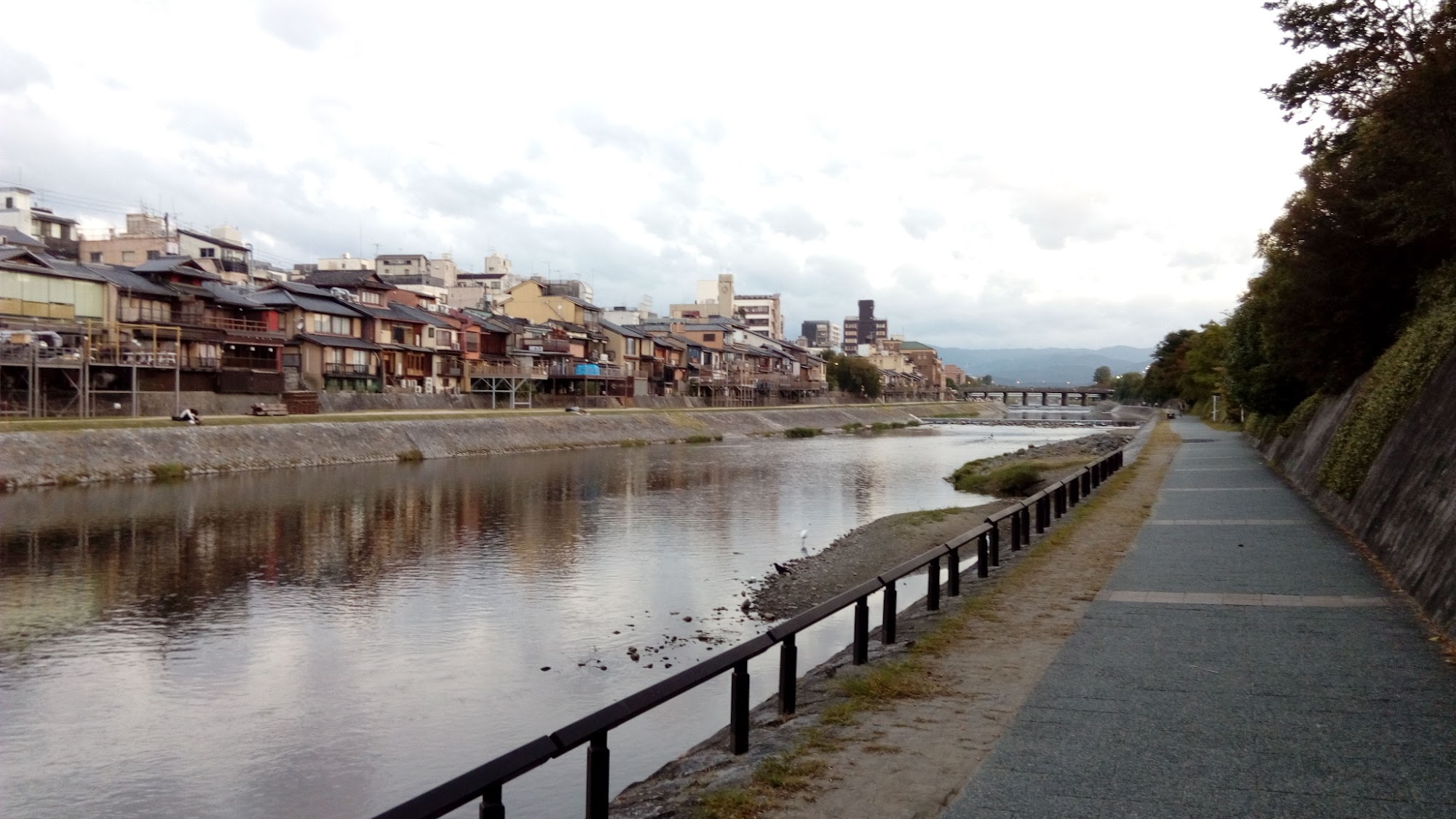 由賀茂川東岸看到的西岸,河面相當平靜