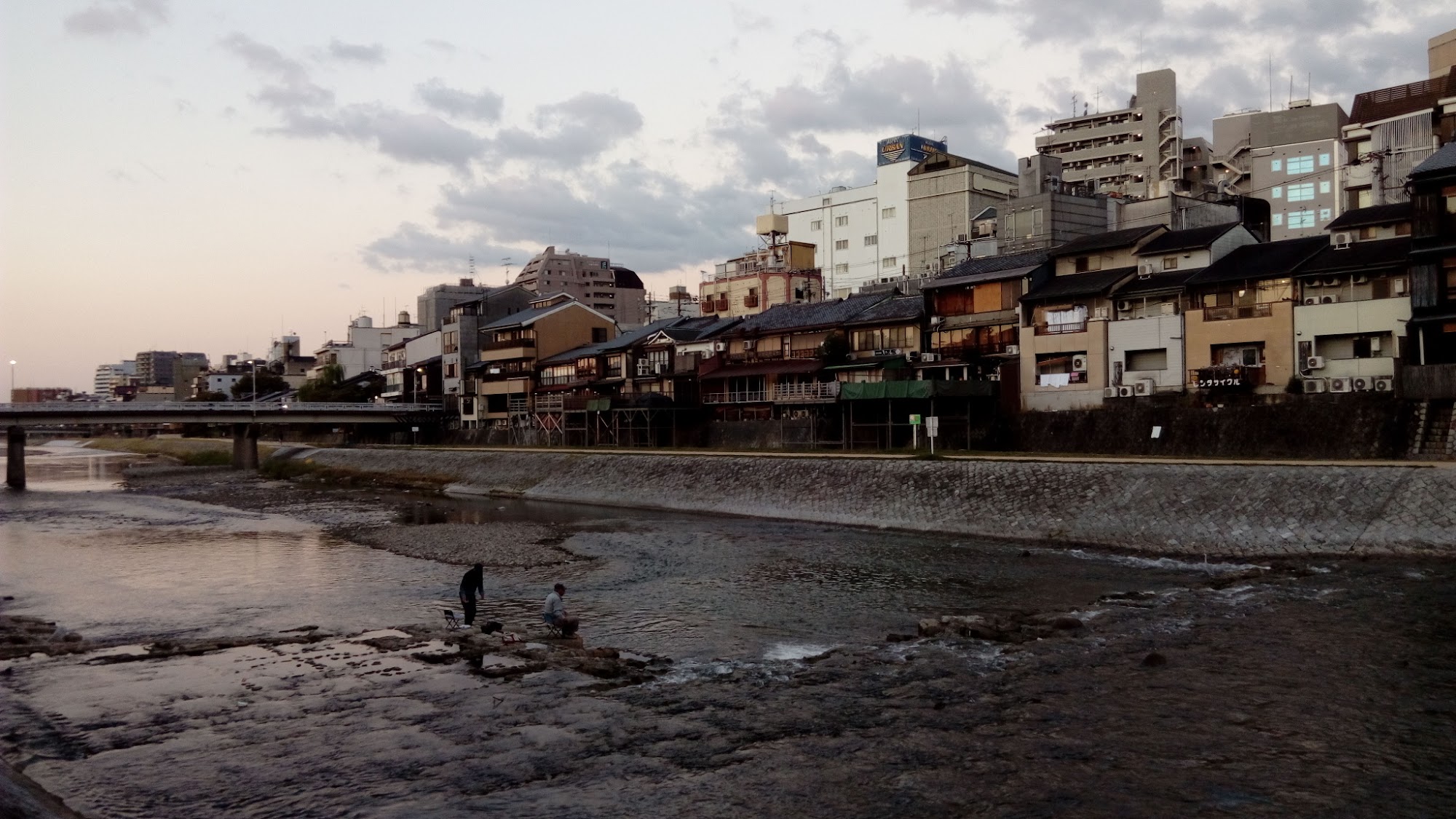 從左岸往右岸(西岸)看,可以看到好多間日本料理店外的納涼床,鴨川河床下還有市
