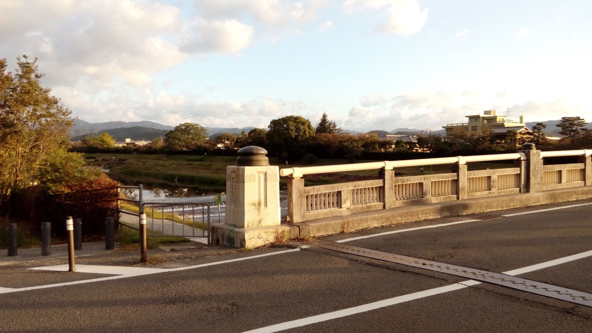 往上游方向看去,遠方是京都盆地北方遠山,起跑的這段路面是石板路,路況還不錯