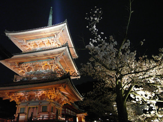 夜櫻+打燈+清水寺