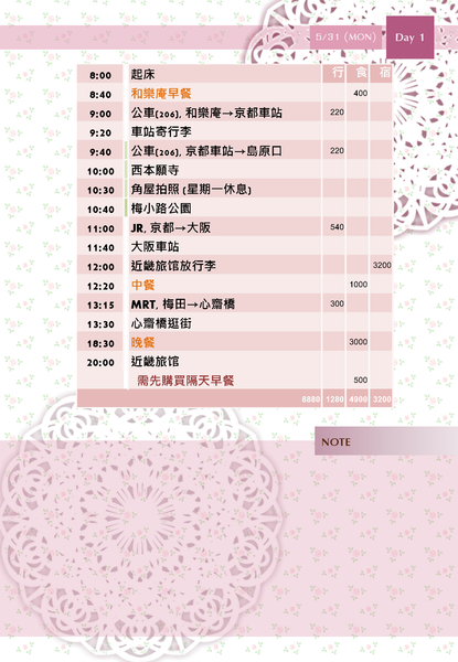 大賴床→ 和樂庵早餐→ 吃飽拍個不停→ 租腳踏車去二条城→ 寄信→ 二条城