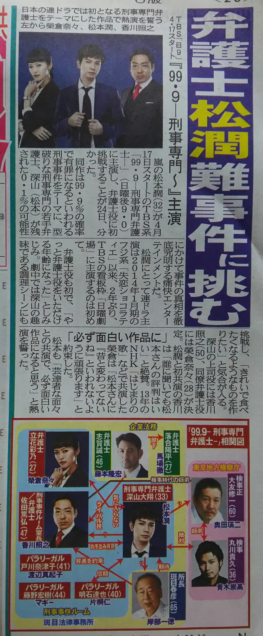 → meow0: 所以4月期是松潤去挑戰大野有演過的律師角色, 然後大野去 02/25 13:06