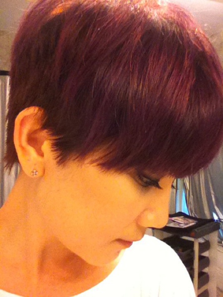 各位乡亲父老 朋友爱人 歌友们 鱼 剪了新发型哟~清爽的浏海 潮流的紫色 好爱喔~哈