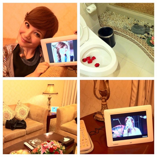 今天在湖南常德入住的飯店 房間好細心的擺放了電子相框裡面都是我的照片噢 好貼心!