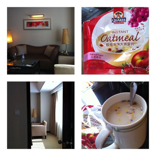 有時候帶著行李箱四處奔波 最營養簡單的早餐就是桂格沖泡式大片的燕麥片呢~大家早安