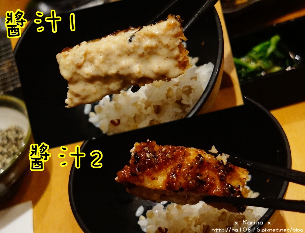本來是分開沾,後來發現正反面分別沾上醬汁1、2(如上圖)也別有一番風味