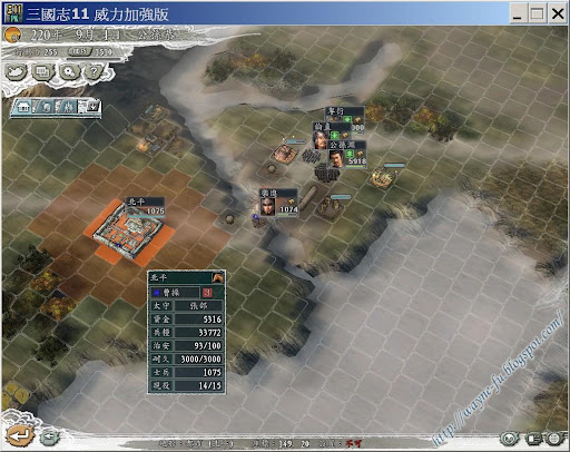 曹軍發展,若是曹軍被其他 AI 打到只剩北平一城時,公孫恭敲北平一下即可得曹軍