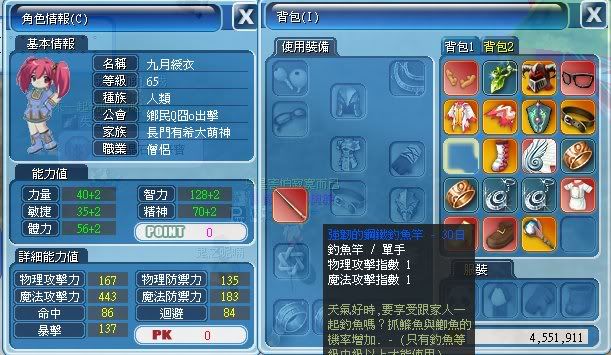 而當我裝備為魔攻指數一的釣竿時