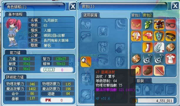 而當我裝備魔攻指數132 加七單手巫術魔附11杖時