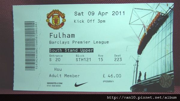 4/9 英超 Man Utd vs Fulham Old Trafford 46 買到官方票