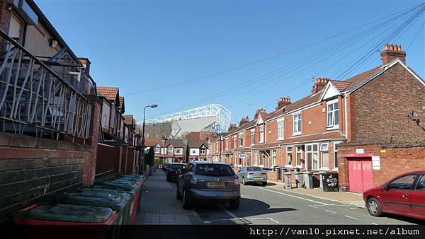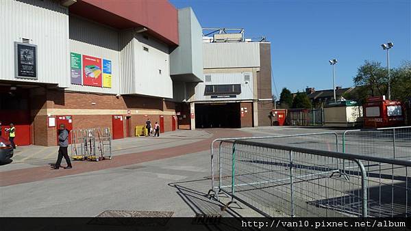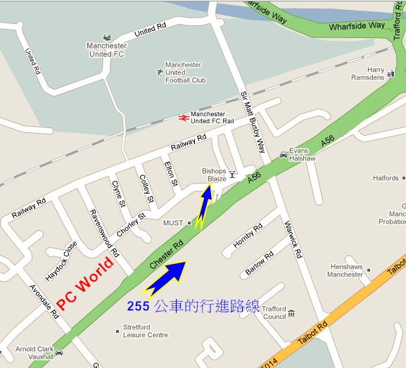 從曼徹斯特市中心的皮卡迪利花園搭上255號公車後,約過10幾分鐘就會經過老特拉福球