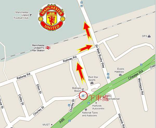 用上面這住址去google,查到的地方不是曼聯訓練場,而是附近的一個地方。