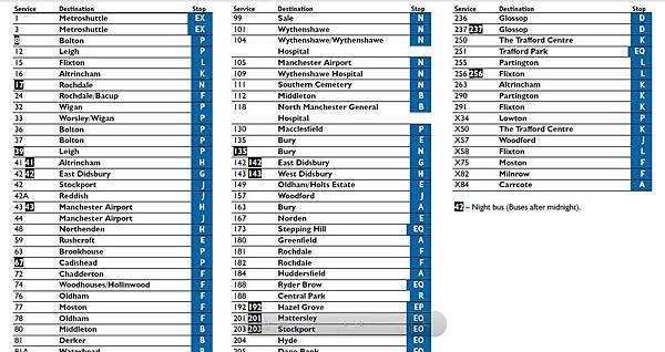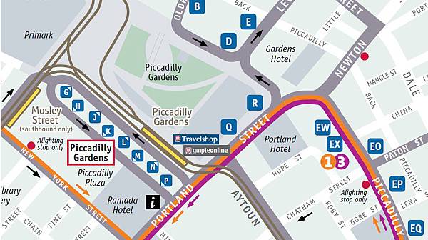 從 Piccadilly Gardens 出發的公車時刻表~