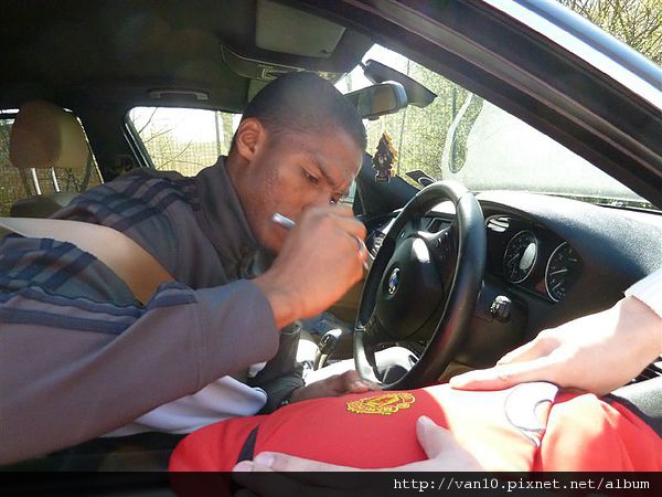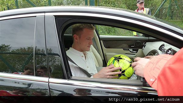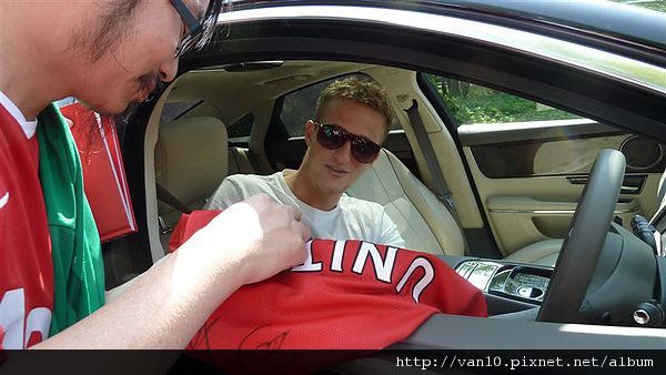 ,因為曼聯球迷比較少會堵訓練前的時間,所以人少,曼聯球員比較會停車,索要簽名和
