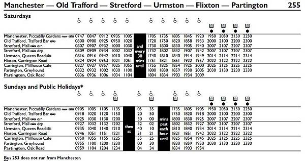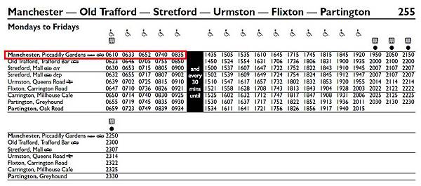 要搭乘 255 號公車,必須到 Piccadilly Gardens 的公車轉運站等車(就在 Piccadilly