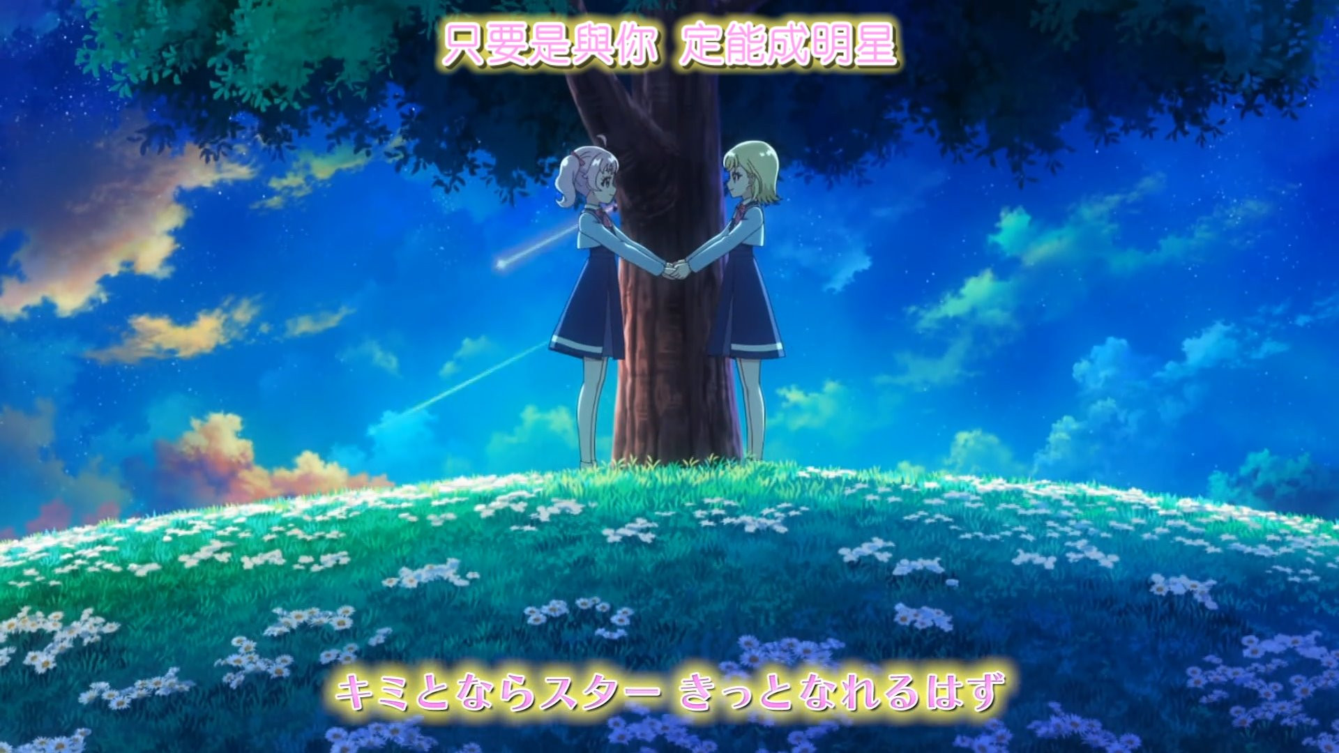 最後也真的實現了 兩人一起成為star愛噗哩 想到這裡就好難過喔 一期是兩人一起成為star 二期為了追尋各自憧憬中的自己 離別確定了 嗚嗚哇哇哇 --