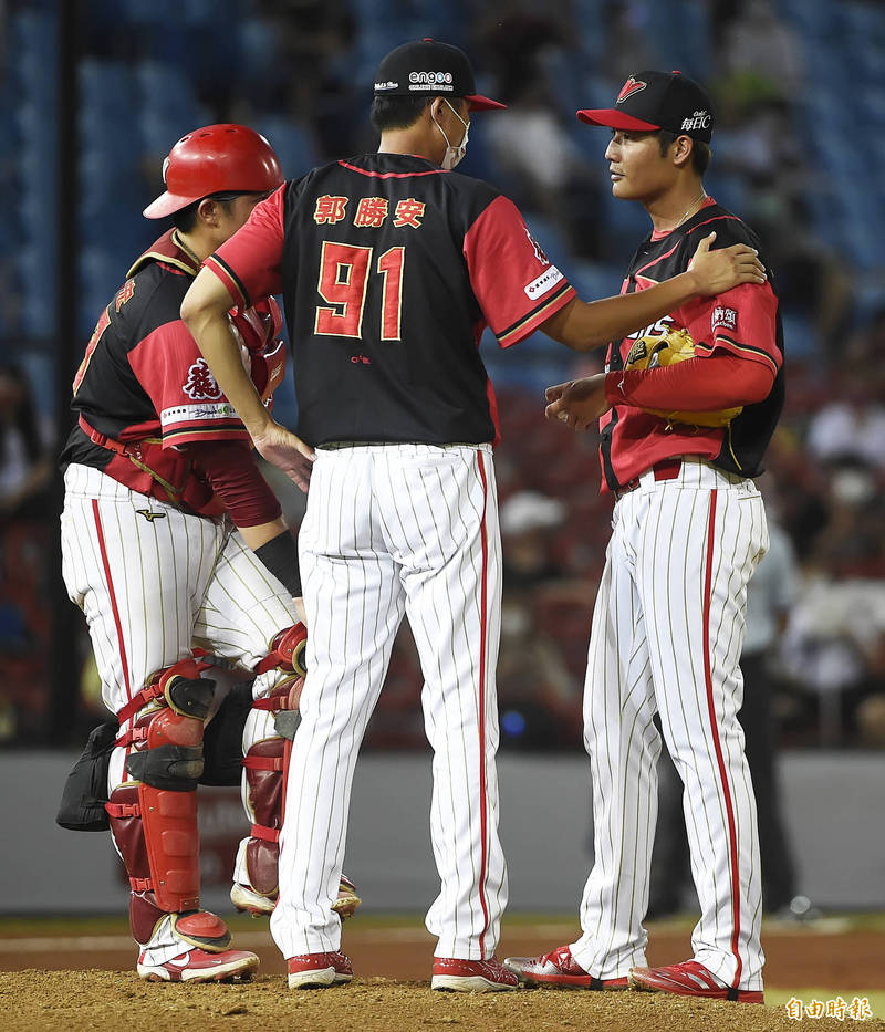 王維中僅投4局就退場,創下返台後最短的先發投球局數。(記者陳志曲攝)