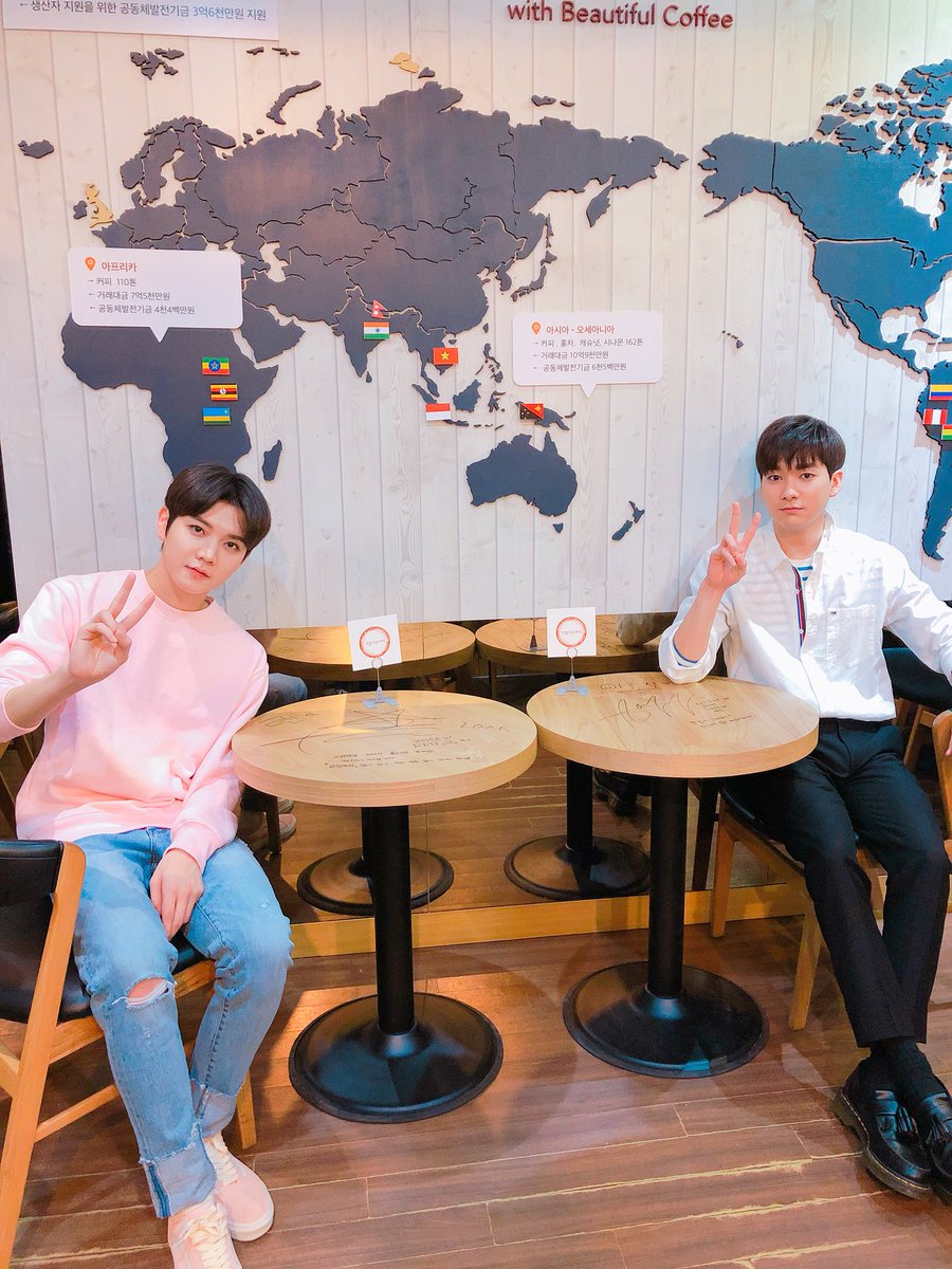 前幾天在VLIVE中認真沖咖啡的Aron和芒果[小狗][兔子]