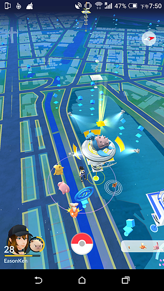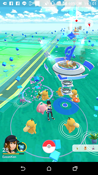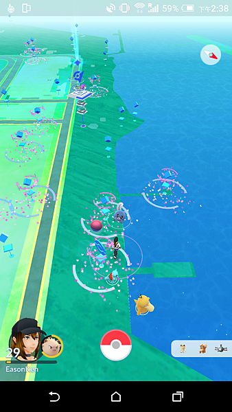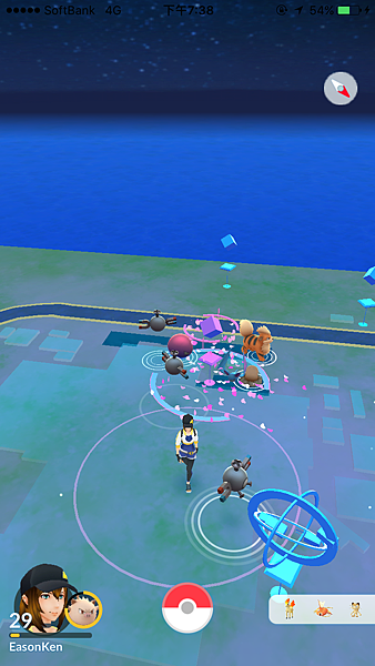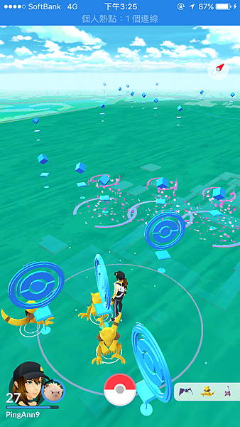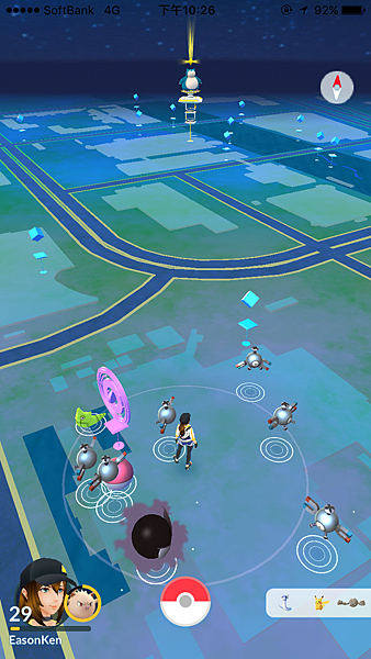 路上也都是開著PMGO(插著行動尿袋)的玩家,一堆大人小孩每個人螢幕都是熟悉的畫面