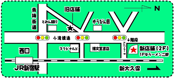 交通:JR幹線於新宿站西口出站後右轉直行,過約三個紅綠燈口後可見招牌(在二樓)