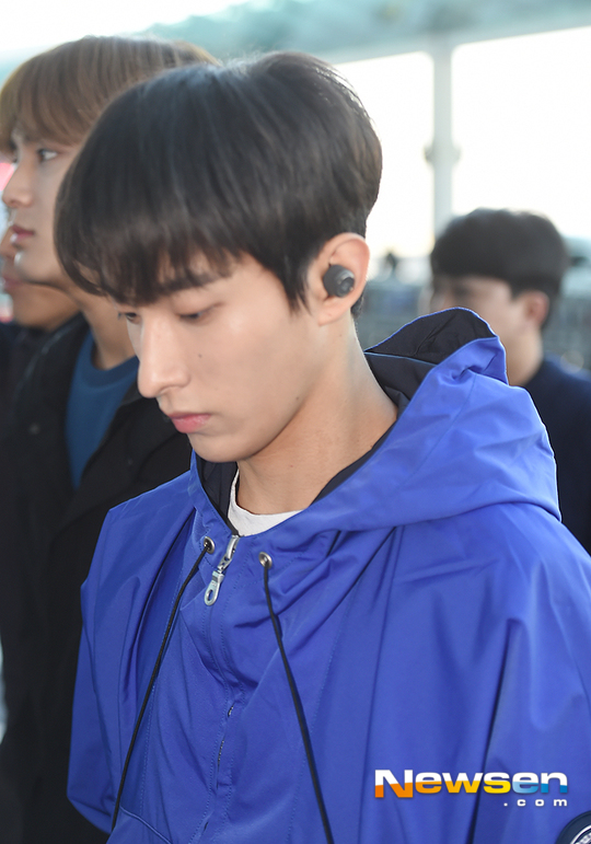 : Woozi天氣冷也是放棄不了他的拖鞋XD