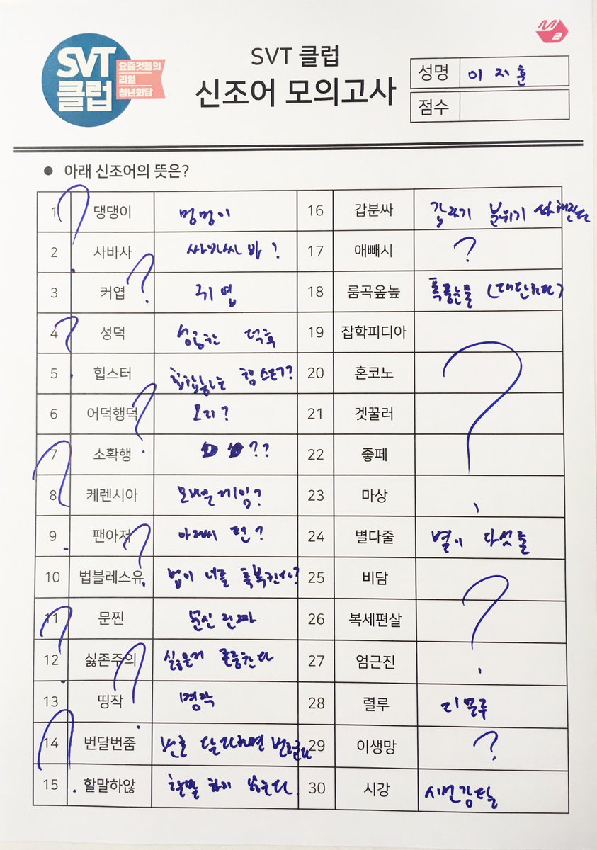 <SVT CLUB> 綠窗口實時關鍵詞登基!SEVENTEEN成員 6人/7人 的新造詞模擬考試試卷紙