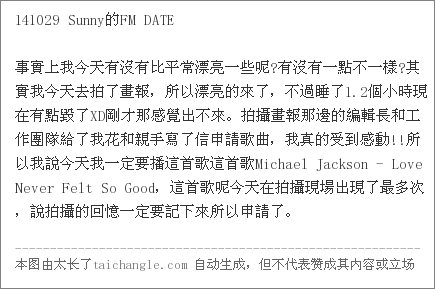 標題[影音] 141029 MBC-FM4U Sunny的FM Date