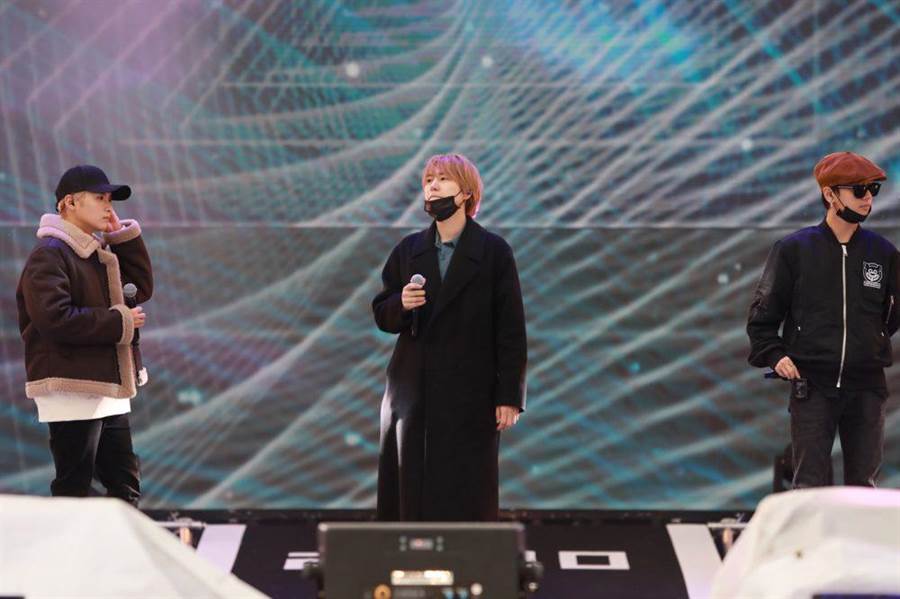 SUPER JUNIOR-K.R.Y.成員圭賢、厲旭與藝聲在桃園跨年舞台熱唱,守候在台下的粉絲興