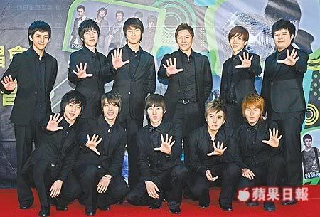 韓國人氣團體「Super Junior」前晚出席台韓友好演唱會慶功宴,後排右為神童,後排右