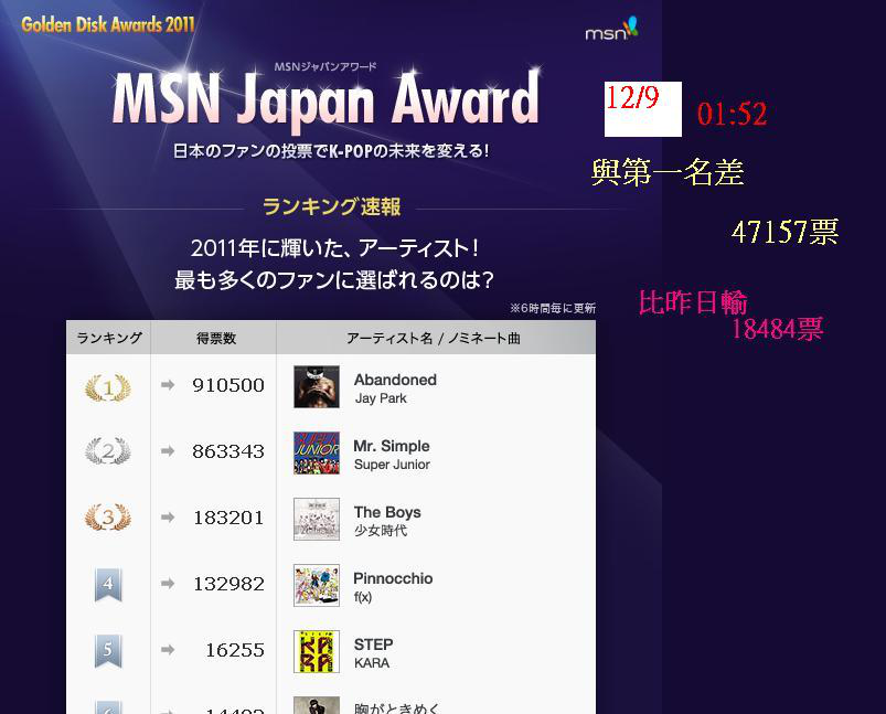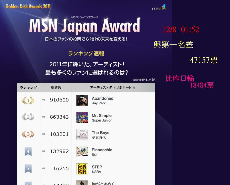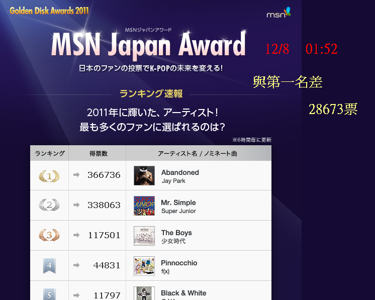 → huibear0104:2排是msn人氣獎 1排是金唱片 投票黃金時間來了XDDD 12/10 00:41
