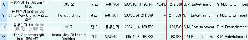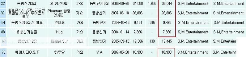 銷售量來自eumhyeop,kpop的年度總評比是在排名100位內,