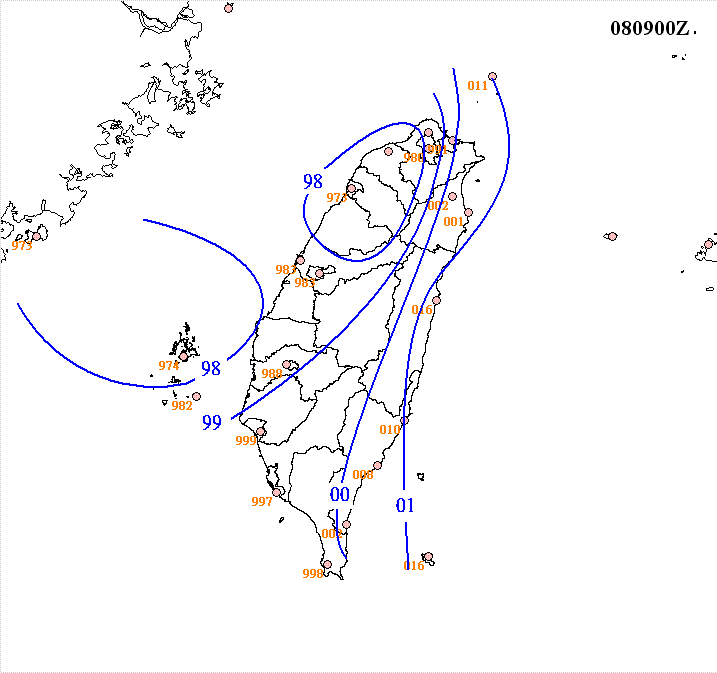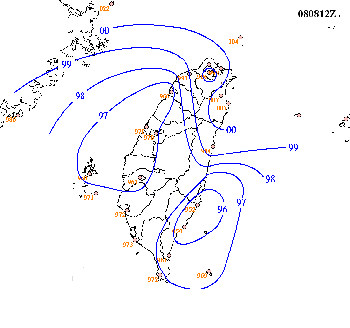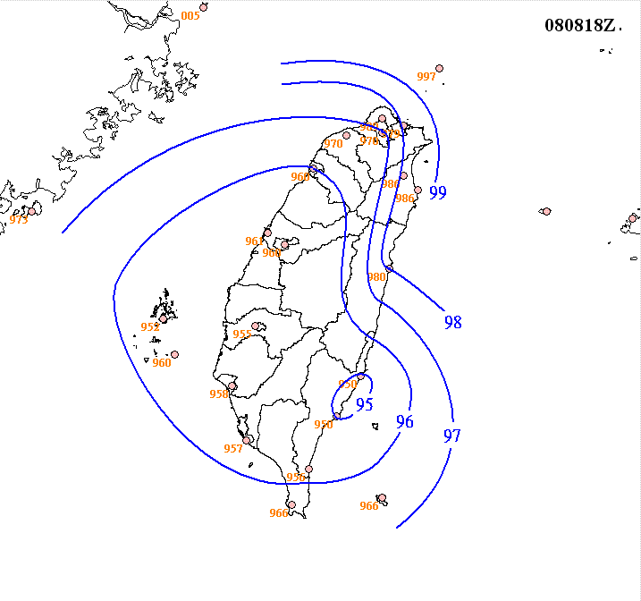 標題[颱風] 梧提影響期間的等氣壓場圖