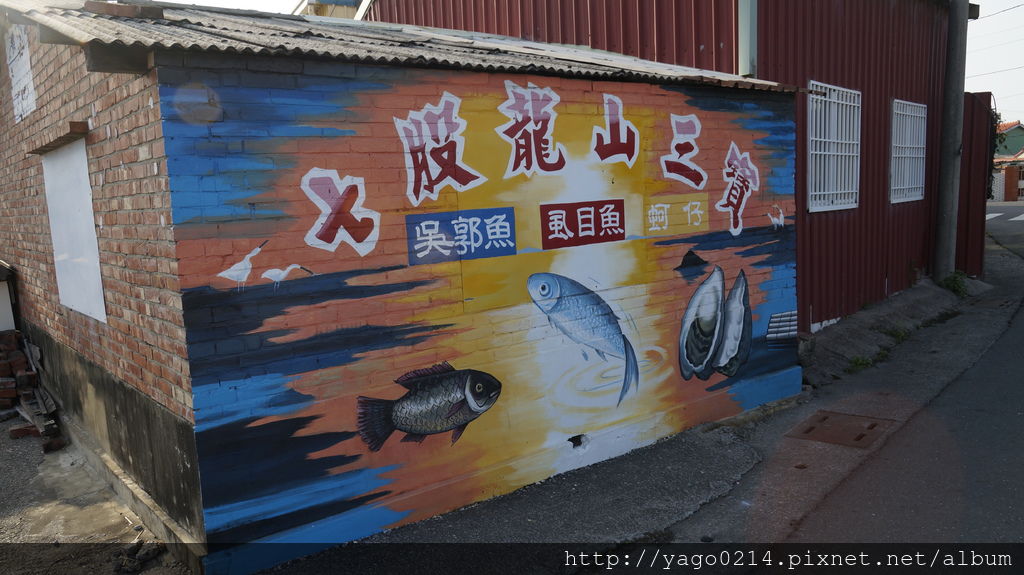 (以下純文字版) [台南景點] 七股龍山彩繪街 台南彩繪村正流行,我已經寫到不知道可以寫什麼了 XD [台南景點] 台南彩繪村-善化胡厝寮+永康眷村+關廟新光里 http://yago0214.pixnet.net/blog/post/386395550 [台南景點] 更多彩繪村-下營維尼村、南科幾米公園、北門婚紗美地、大內龍貓公車 http://yago0214.pixnet.net/blog/post/403890658 我之前就已經看過有人寫過這裡的彩繪村, 也知道這裡的彩繪村不大, 應該說彩繪街才對,就一條街! 基本上我也不太會帶客人來這裡, 因為台南彩繪村真的頗多!選擇很多! 直到客人指定要來這裡, 可能去七股鹽山,想說附近有什麼景點順便逛一下, 既然客人都這樣說了,也是順路的來逛逛! http://pic.pimg.tw/yago0214/1428501031-3608240993_l.jpg