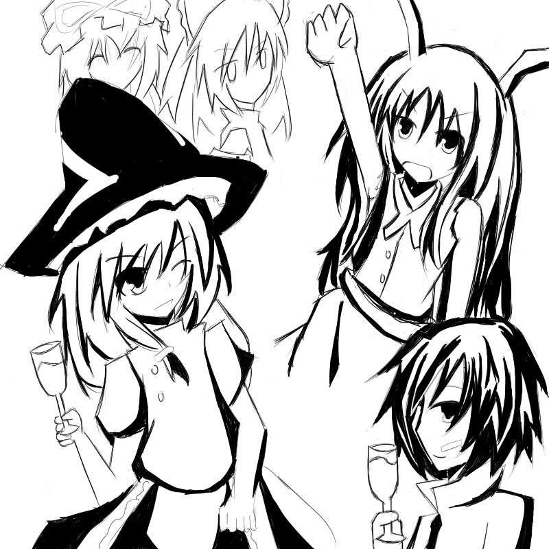 「才不會讓你獨佔呢。這是要分給大家喝的。」我馬上把酒移到一旁讓魔理沙的手搆