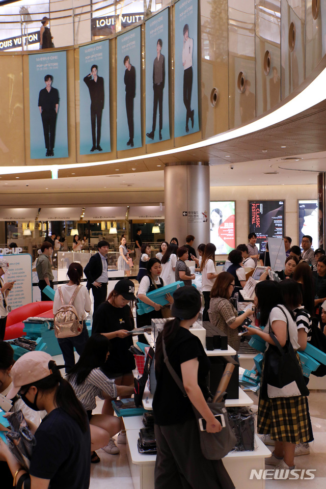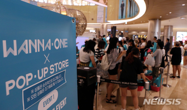 樂天百貨蠶室店舉辦Wanna One快閃店活動 http://www.newsis.com/view/?id=NISI20180722_0014312444 樂天百貨從即日起到29日在蠶室世界塔的地下樓層舉辦Wanna One快閃店活動。 本次活動展示銷售包含Wanna One行李箱在內等多樣的夏季商品。其中代表性商品的行李箱 也可以在九樓的BUYER's PICK購買。 從活動的第一天開始,樂天百貨蠶室店會場即湧入了擁擠的人潮。 http://image.newsis.com/2018/07/22/NISI20180722_0014312441_web.jpg