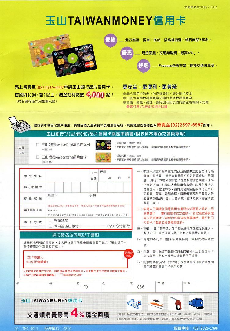 標題: Re: [情報] 玉山TAIWANMONEY信用卡換發申請書