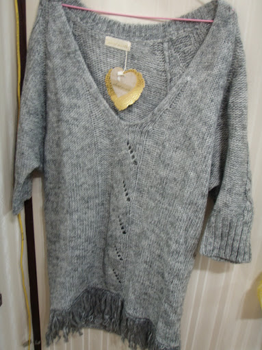 灰色短袖長版毛衣