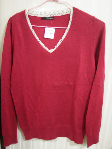 紅色蕾絲針織上衣