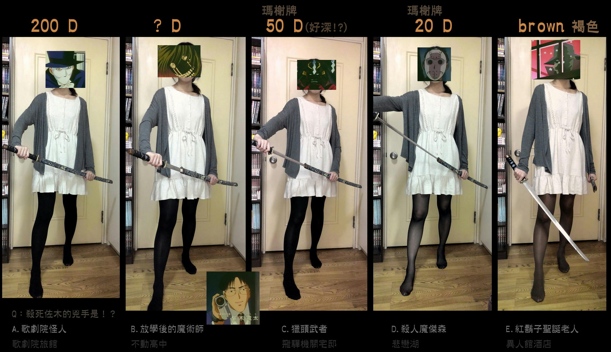 1.換搭透膚絲襪 2.手不知道擺哪 3.漫畫+殺人事件 4.星星月亮的碼臉可怕