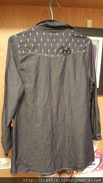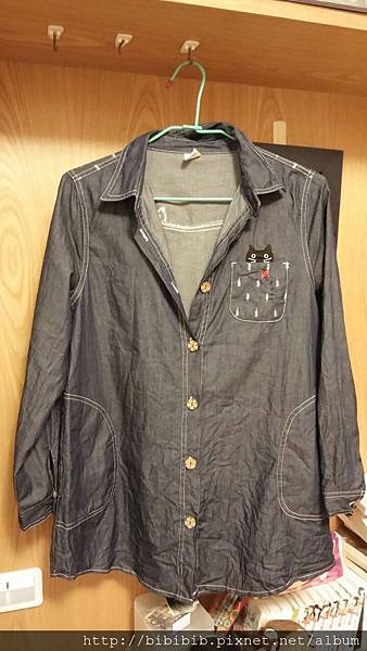 再來是 可愛貓咪瓢蟲口袋長版牛仔襯衫