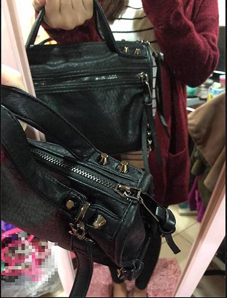 款式極像,但鉚釘款式、位置、拉鍊的線不一樣,提把也不會有鬚鬚