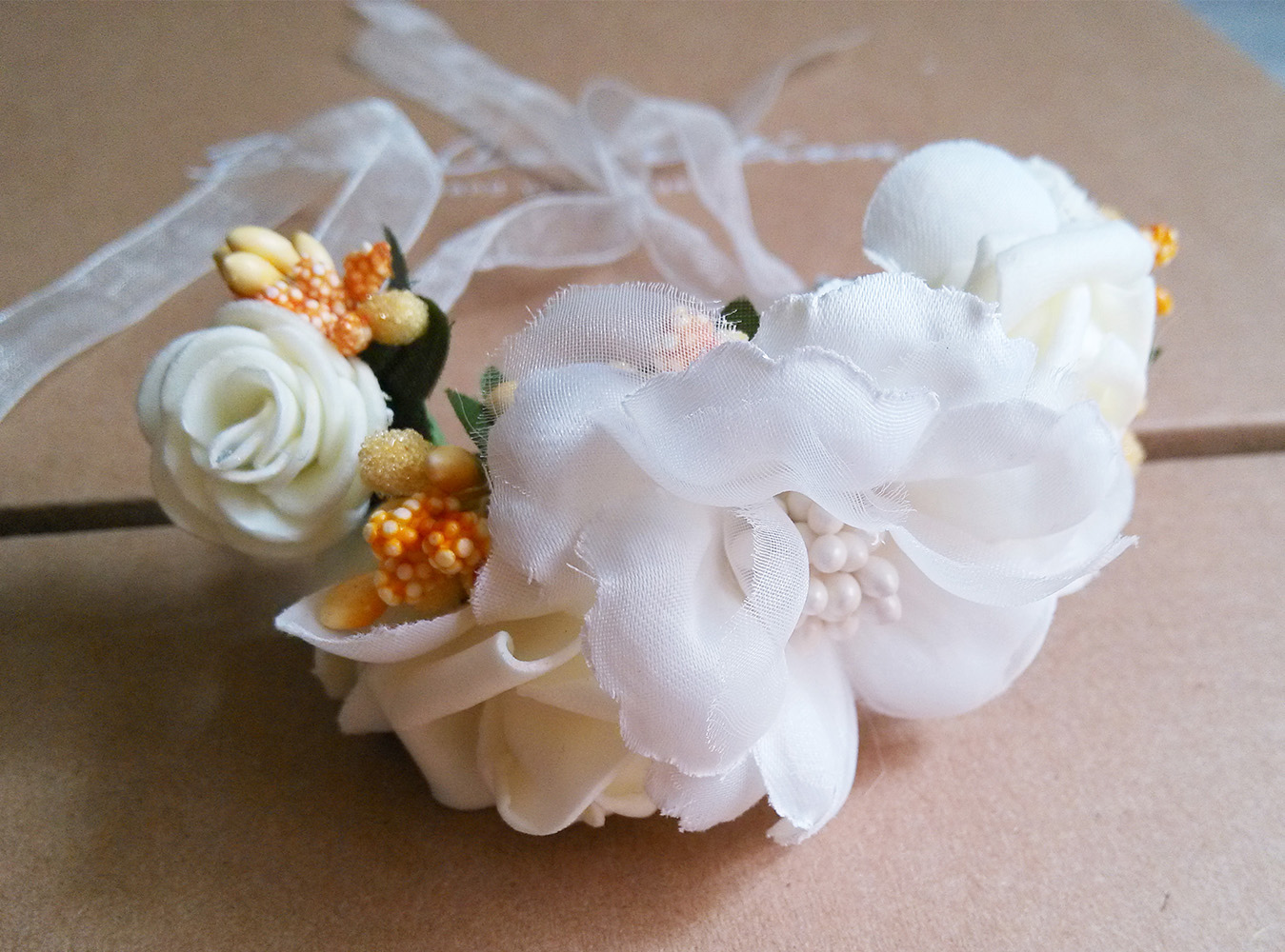 結婚宴客沒有捧花(辦桌沒有所謂的進場),於是就想用手環花來代替