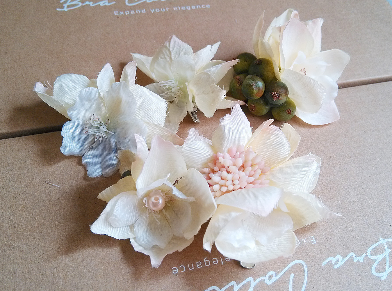 想說這一組要是不當髮飾還可以拿來做成手腕花或胸花,所以就買了 ~XD