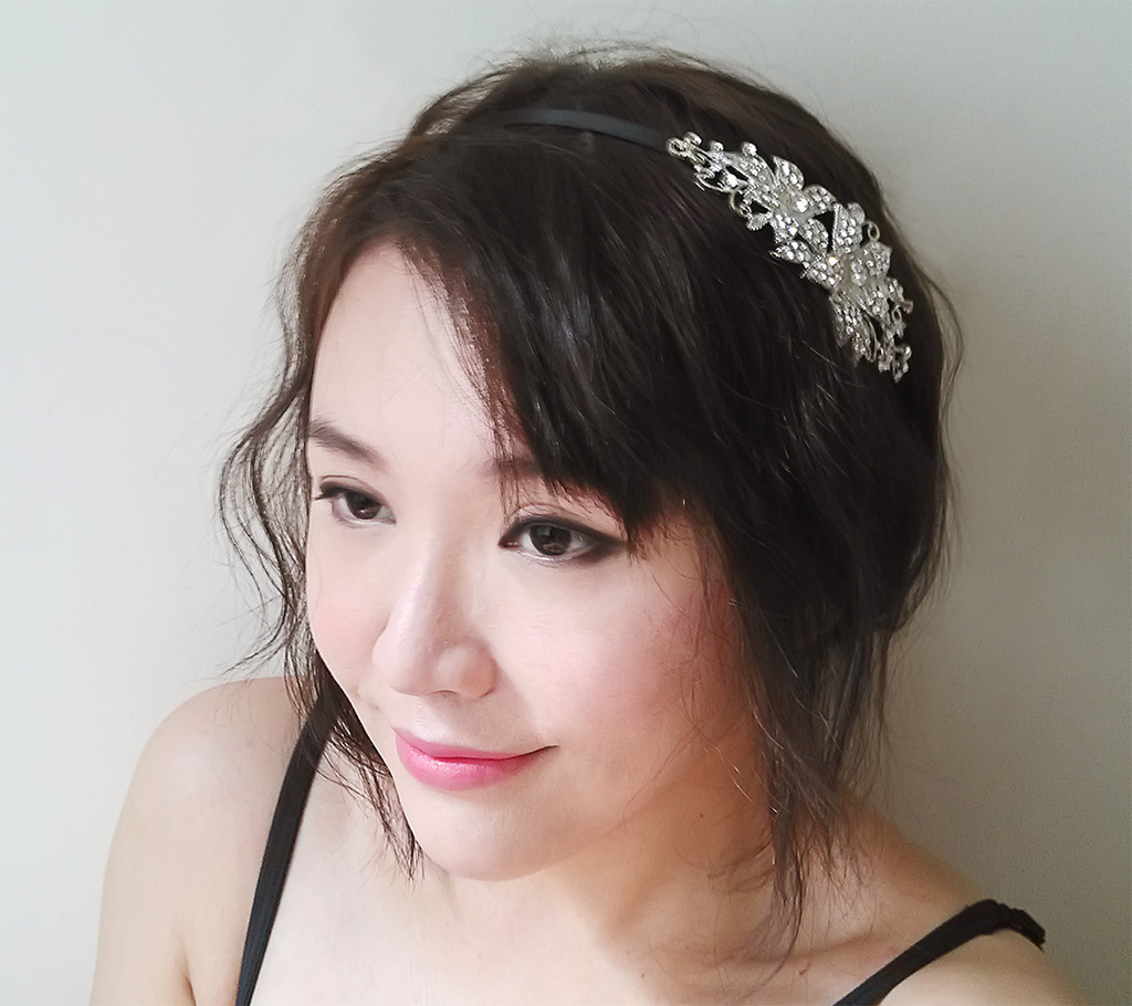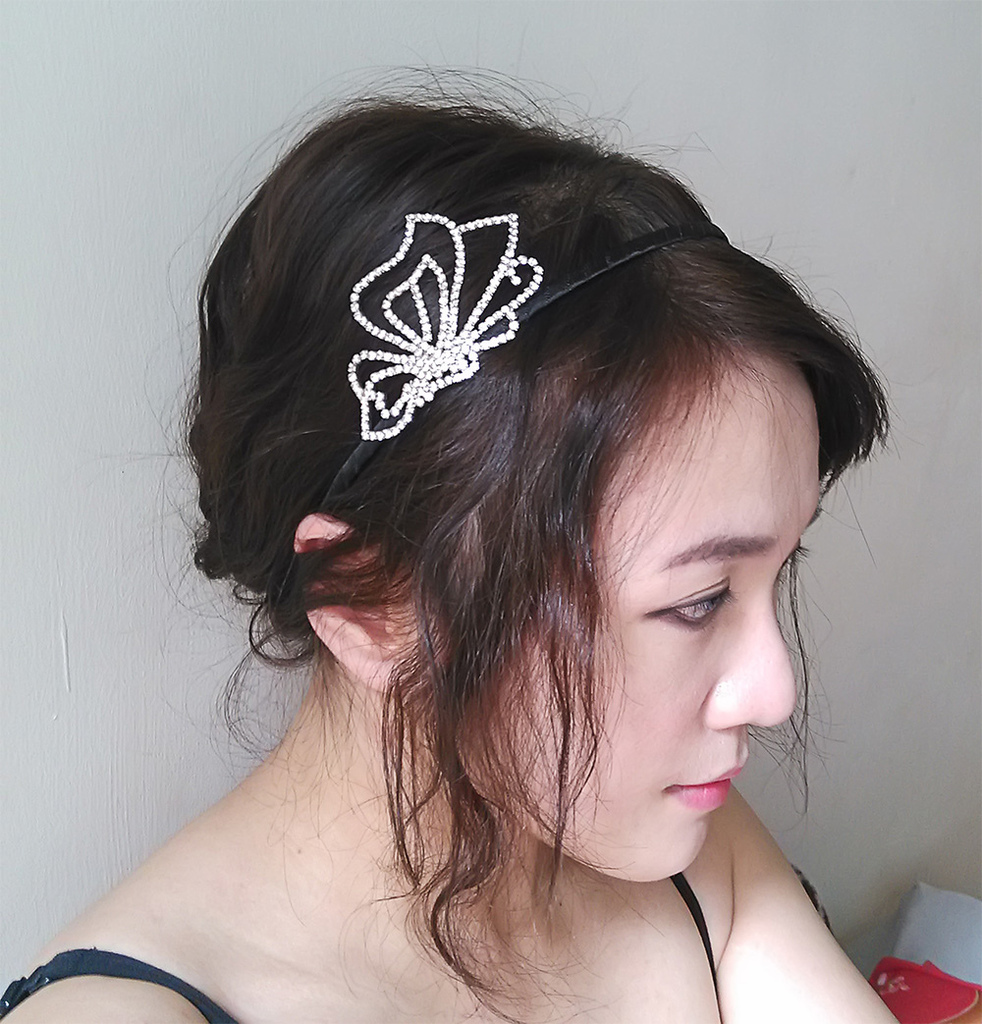 最先打算帶個鑽飾的髮箍就好了~XD