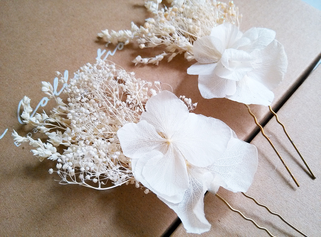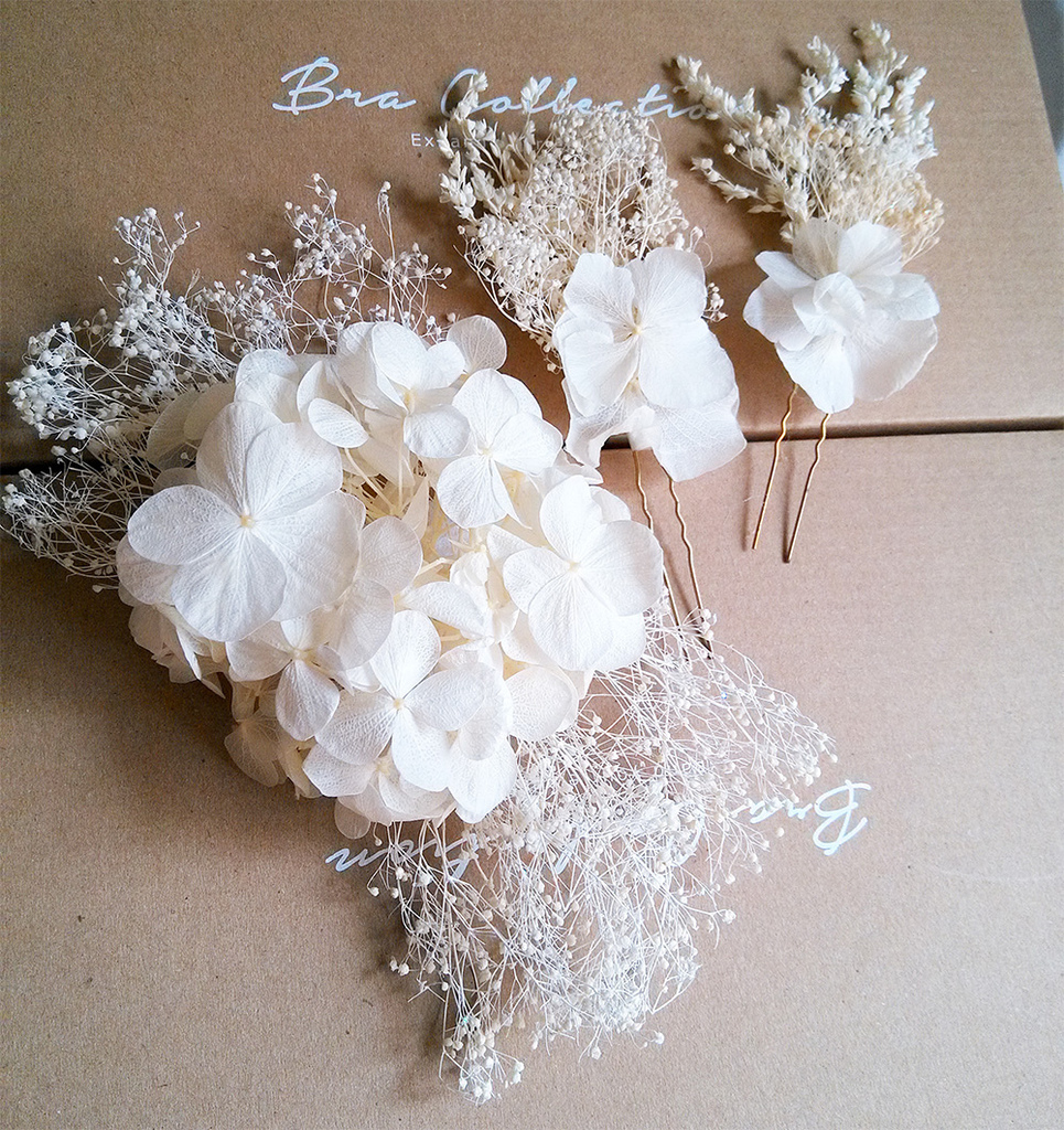 滿天星系列 手工永生花鮮花新娘頭飾發飾配飾品多色發叉發梳U型夾