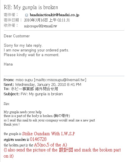 就照著版上先進分享的方法寄mail給日本BANDAI公司