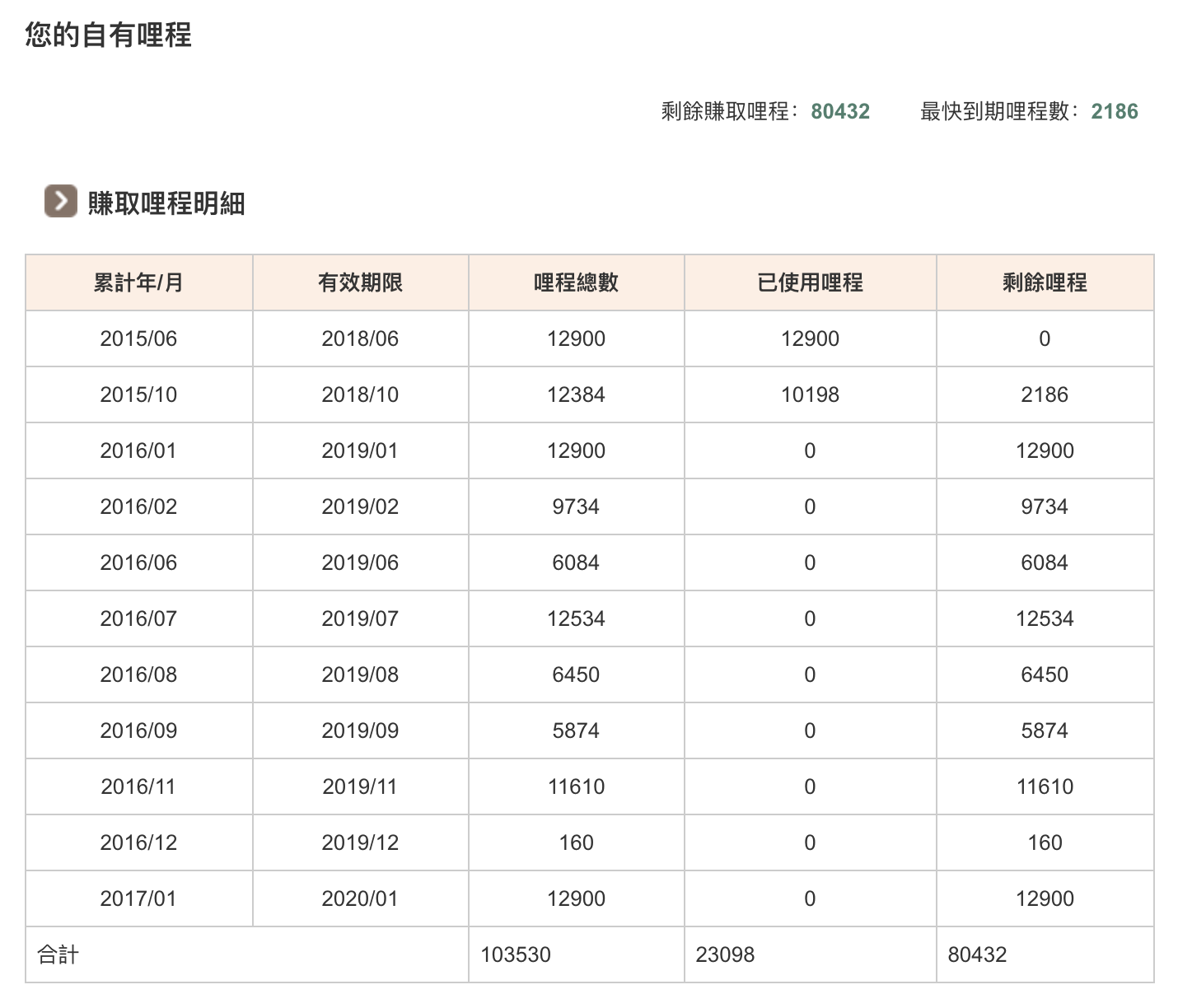 哩程明細: https://upload.cc/i1/2018/05/31/uICzOK.png